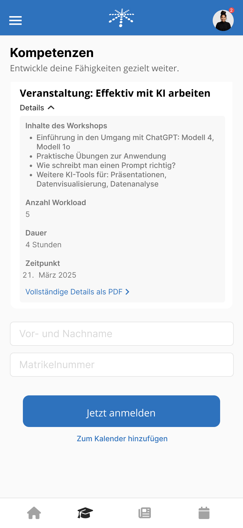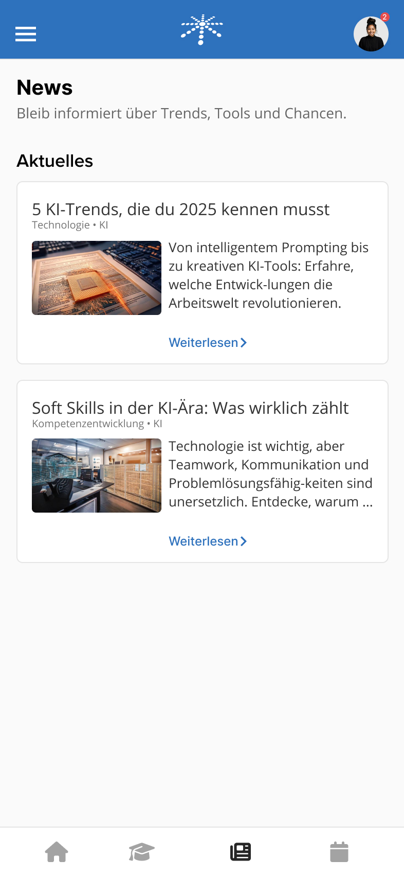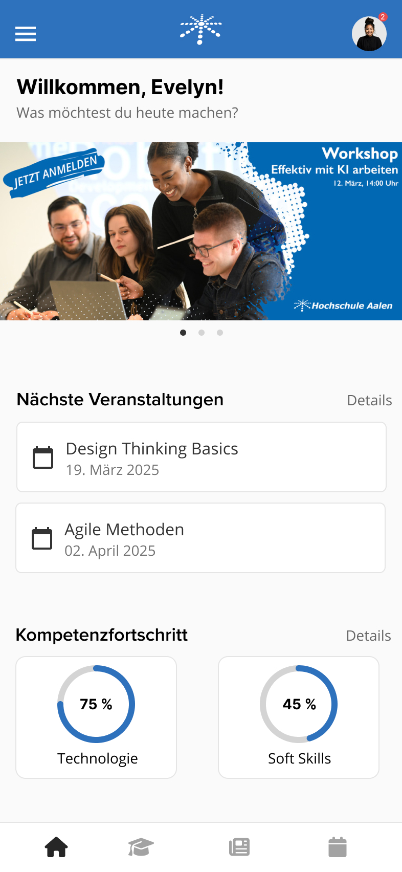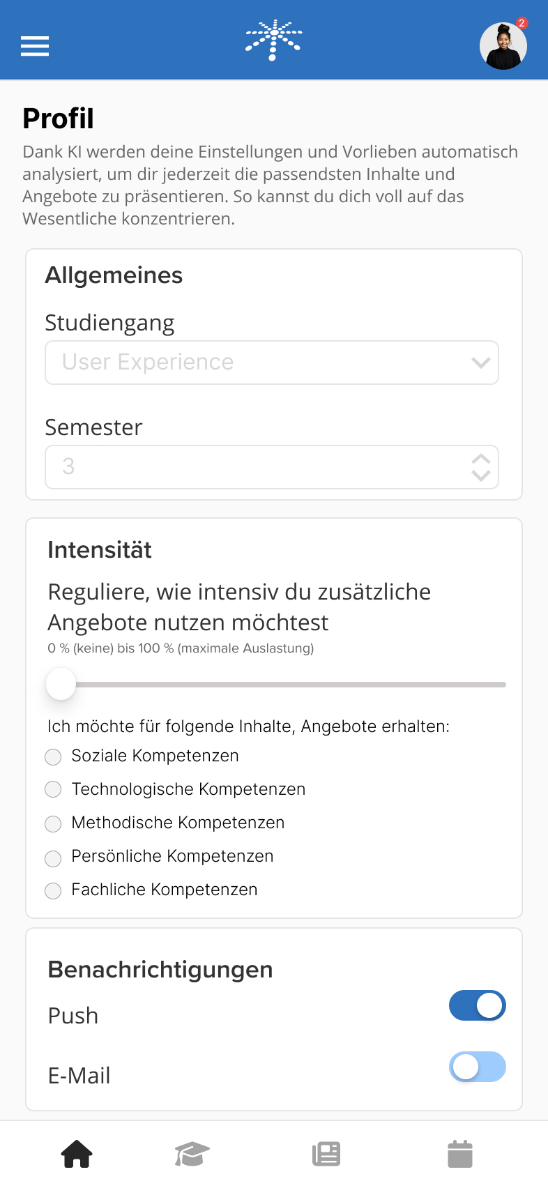 In Figma entstand ein klickbarer App-Prototyp, der Studierende durch digitale Lernziele, Micro-Internships und KI-gestützte Inhalte gezielt auf die Praxis vorbereitet. Die Lösung ist mobil einsetzbar und fokussiert auf eine moderne, selbstgesteuerte Studienorganisation.