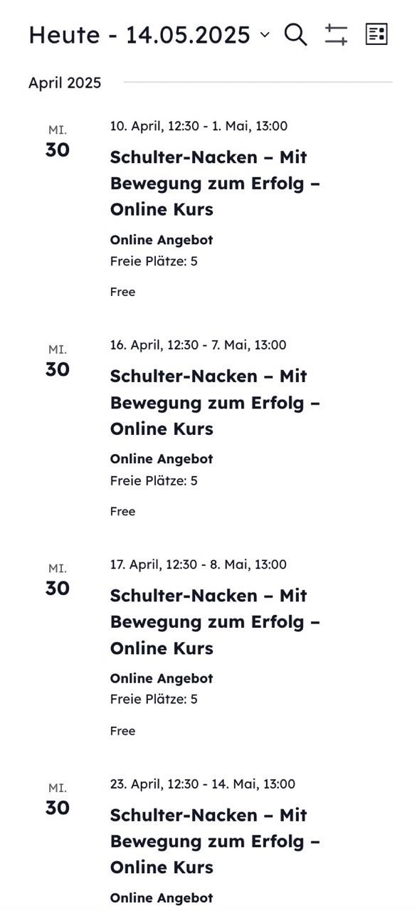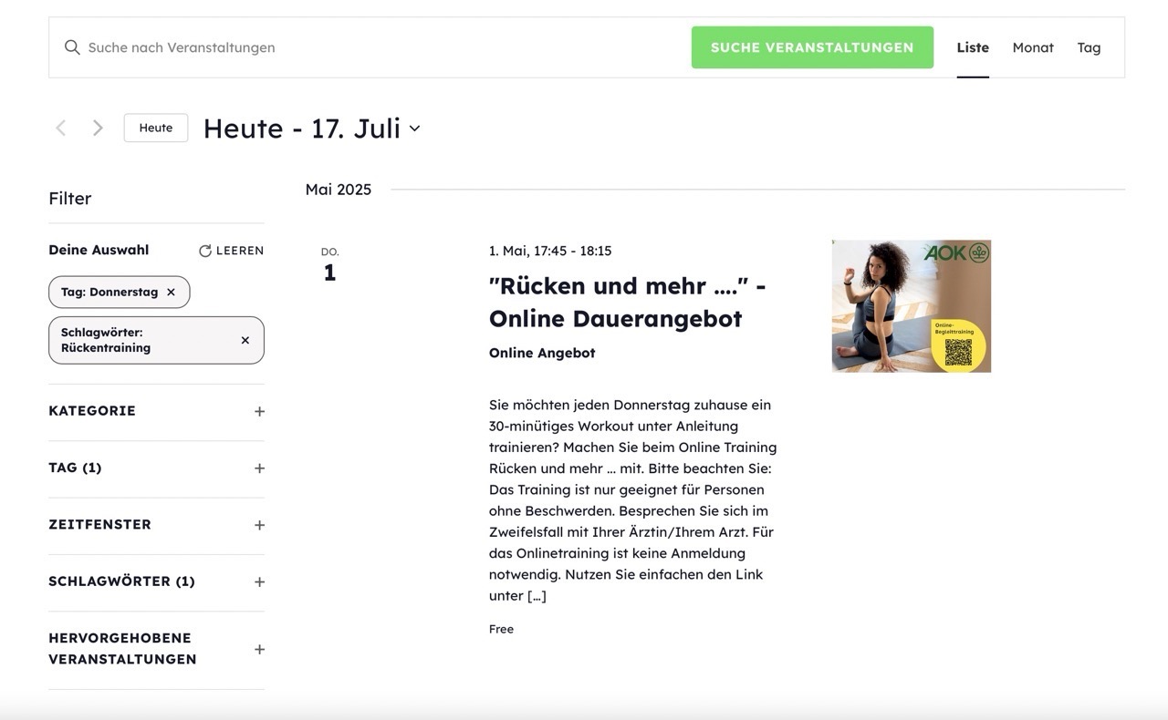 - Integration eines Event-Tools mit Anmeldefunktion & filterbarer Eventdarstellung